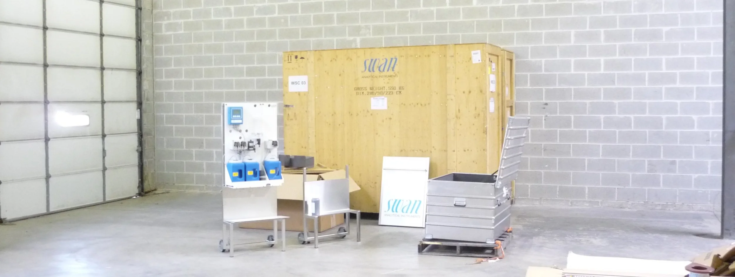Bild: Ein erste Kiste mit Geräten aus der Schweiz war gerade in Chicago angekommen.